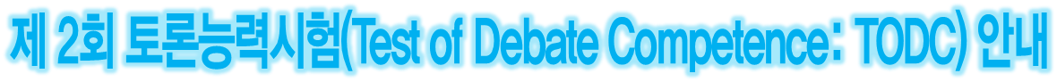 | 제 1회 토론능력시험(Test of Debate Competence: TODC)일정 안내 (0) | 2020.03.21 |