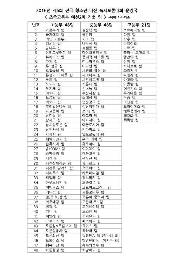 | [결과발표_예선2차] 2016년 제5회 전국 청소년 다산 독서토론대회_160825 (0) | 2020.03.22 |