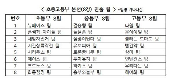 본선(8강)에 진출한 학생들 모두 축하드립니다.