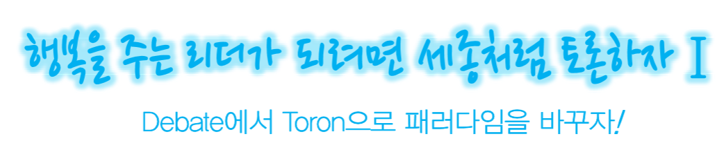 “경연을 한 다음 경연청에 나와서 종일토록 토론하게 하라”(세종실록 00/12/17). 세종은 절대군주의 위치에 있었음에도 토론의 생산성 을 간파하고 이를 실천하여 우리 역사에서 최고의 치적을 남긴 탁월한 리더이다. 아직도 우리 사회에서는 소통의 중요한 장르인 토론을 하 면서 상대를 공격하여 승리를 거두려는 정복의 수사학이 위세를 떨치고 있다. 이제 서양식 디베이트를 세종이 실천했던 우리식 토론으로 대체하여 을 해 성원간의 상 이해 진시키 최적의 의사결정을 하며 최선의 해결책을 찾아 성원을 더욱 행 하게만어 대체하여 토론을 통해 구성원간의 상호이해를증진시키고, 최적의 의사결정을 하며, 최선의 해결책을 찾아 구성원을 더욱 행복하게 만들어 주는 리더가 필요한 시점이다.