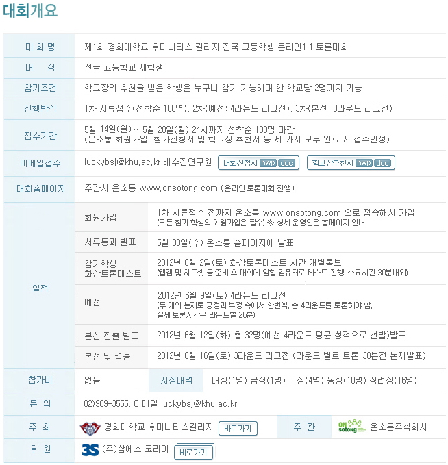 | [2013년] 제2회 경희대 국제스피치토론연구소 주최 전국 고등학생 온라인1:1 토론대회 (0) | 2020.03.20 |