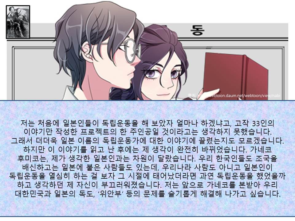 "독립운동가 100인 만화 프로젝트 33인 만화" 대상 도서를 읽고 참가했던 내용으로 출품한 학생에게 모든 소유권과 저작권의 책임이 있습니다.