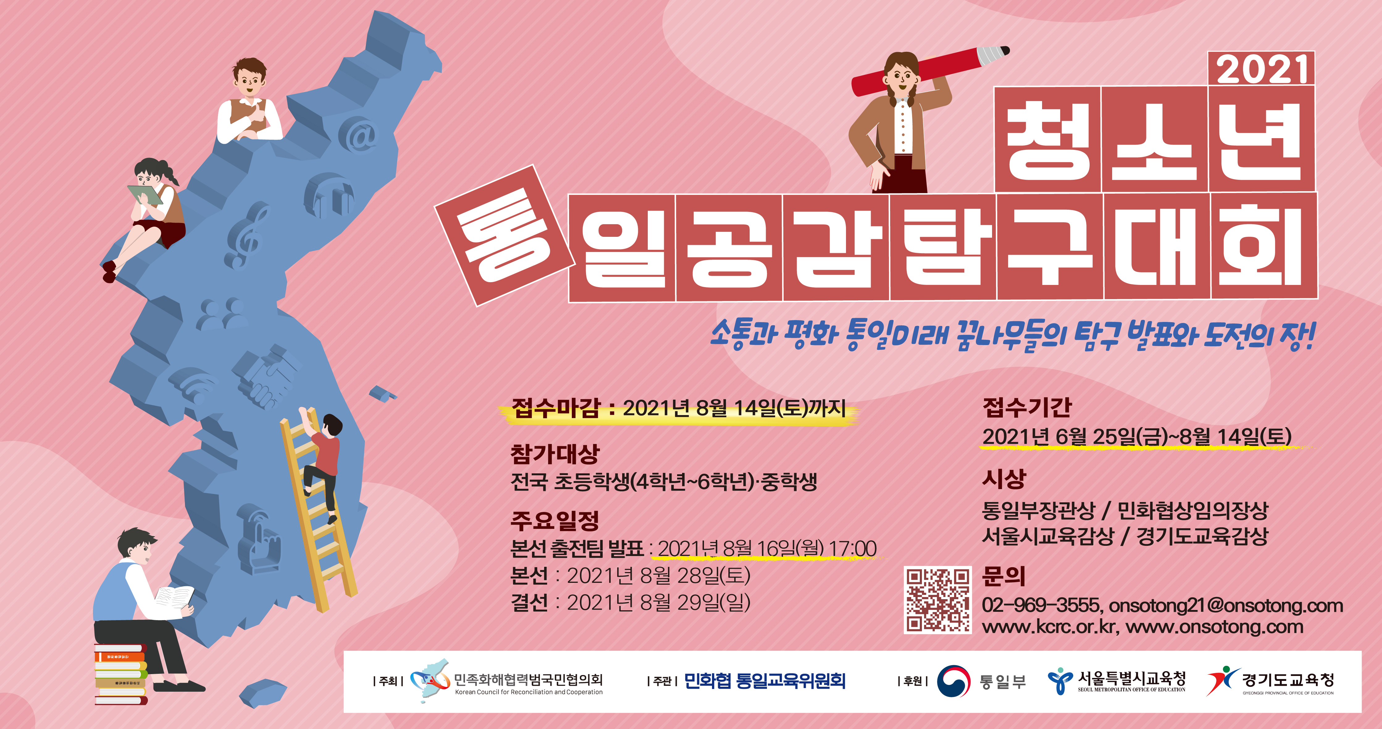 | [본선/결선_안내] 민화협 2021 청소년 통일공감 탐구대회 본선 및 결선 준비 안내 (0) | 2021.08.17 |