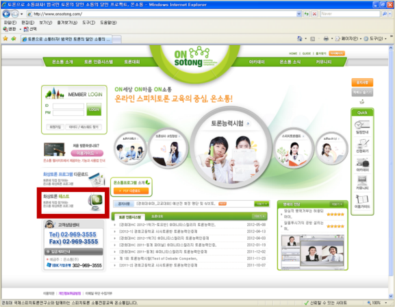 온소통 홈페이지 메인 왼쪽에 있는 '화상토론테스트'를 클릭하여 먼저 작동해 보면 좋겠습니다.