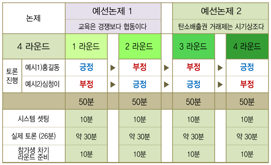 만나 토론을 하게 됩니다.  예선전 라운드 매칭은 6/5()에 공지해 드리겠습니다.