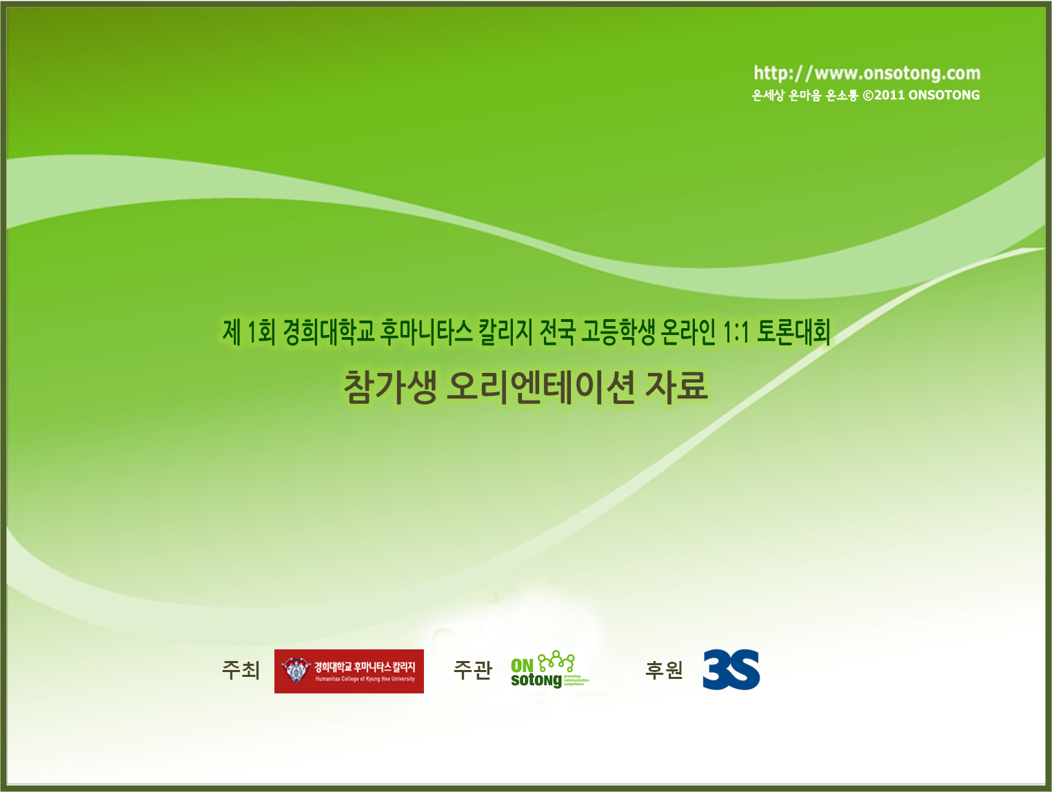 경희대 후마니타스 칼리지 전국 고등학생 온라인1:1 토론대회 운영국입니다.
