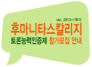 있는 개인의 핵심능력으로, 2012-1학기 토론능력인증제에 참가할 본교 재학생을 모집합니다!
